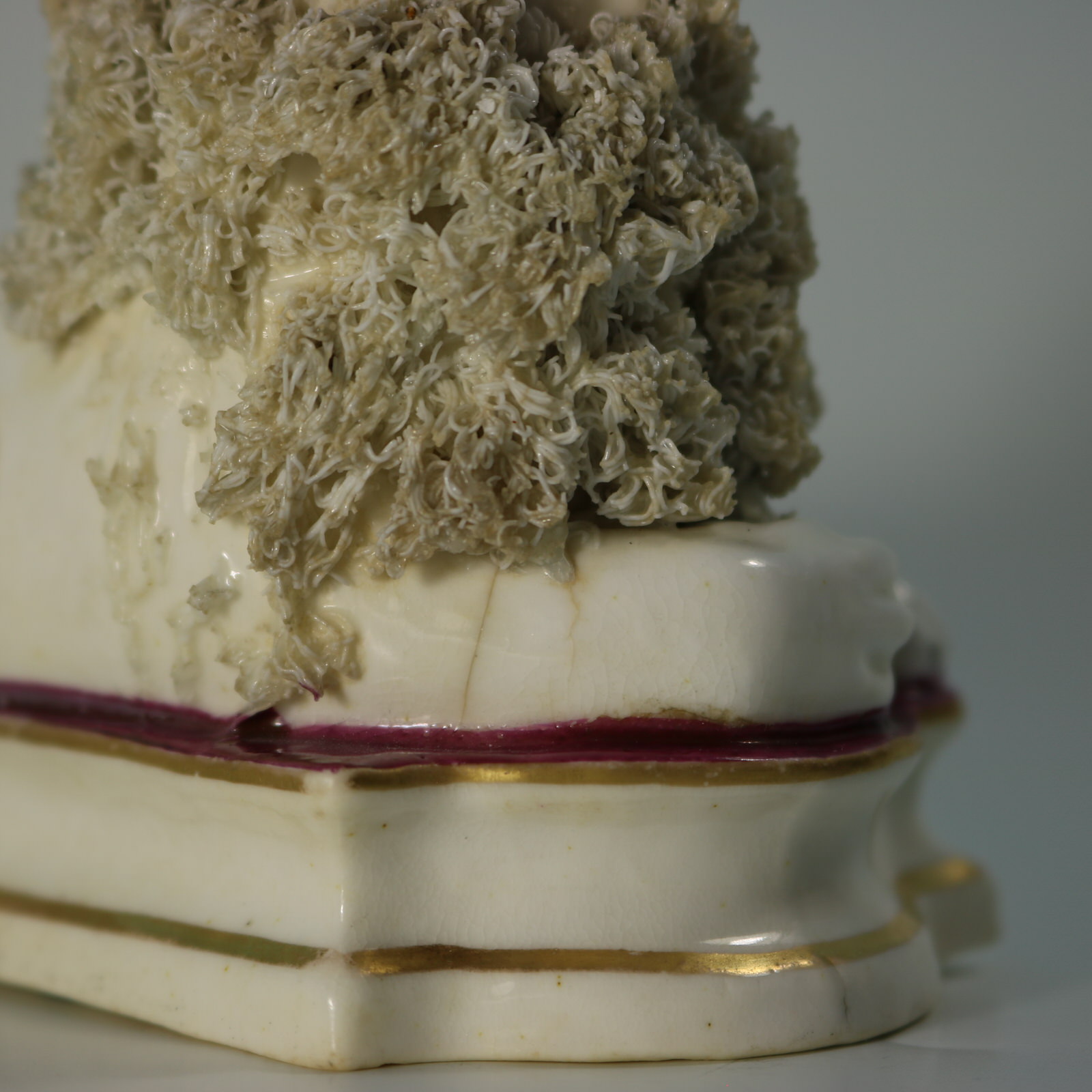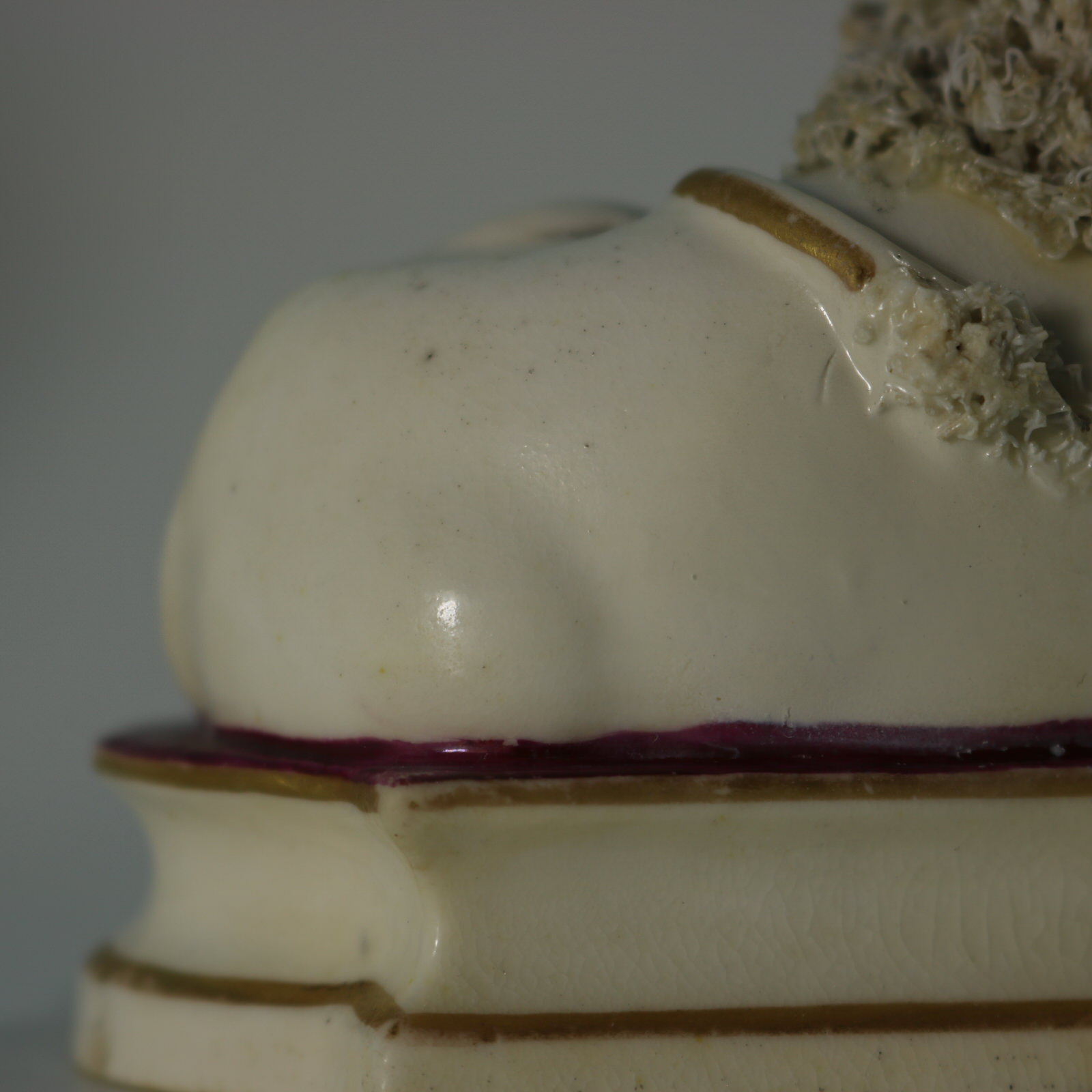 Attributed to John Lloyd of Shelton. Shredded clay forms the lion's mane and tail, and the lamb's coat.