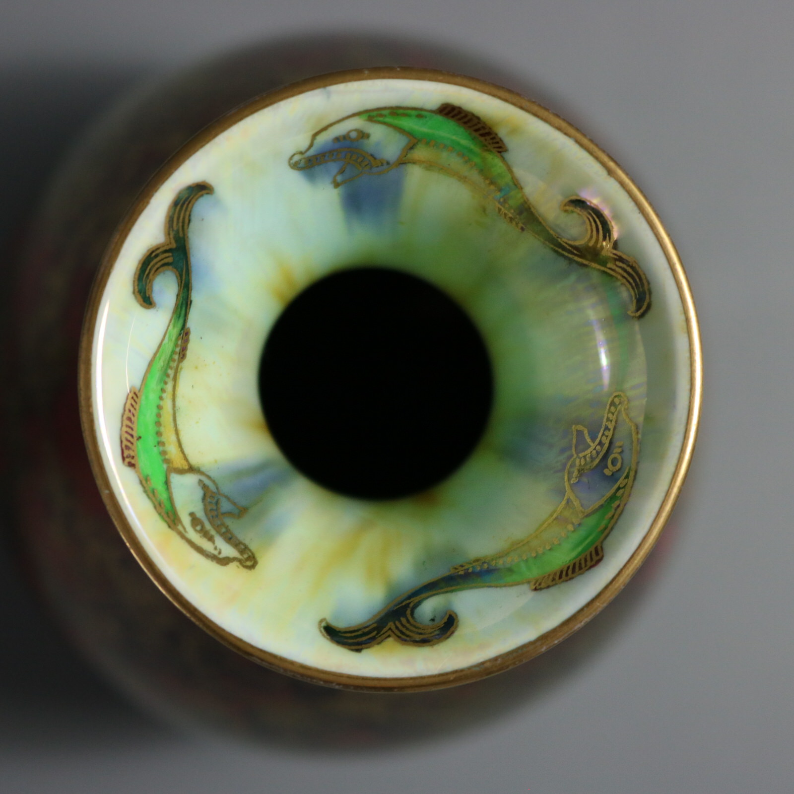 The inside of the rim features three colourful fish.