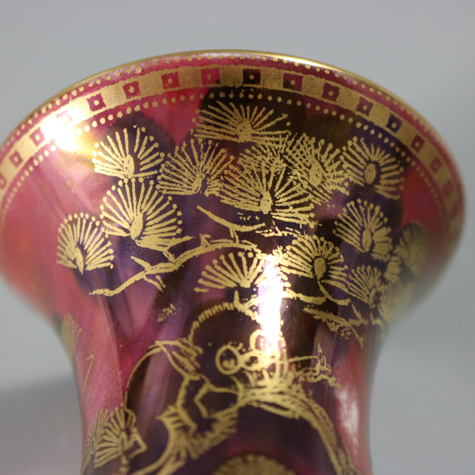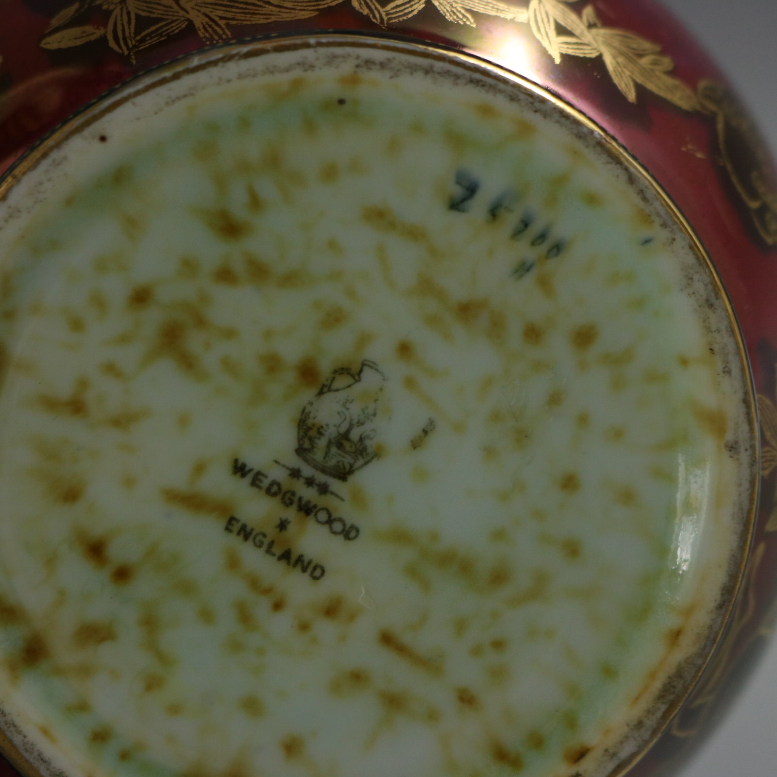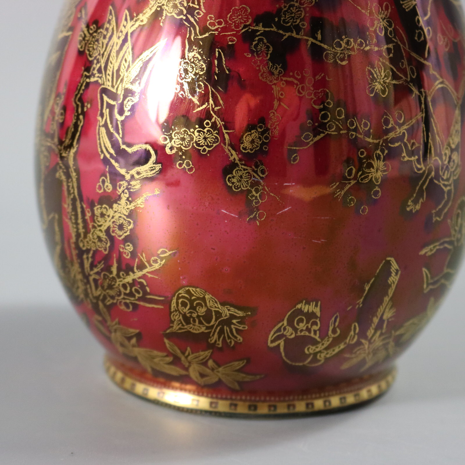 An area where the ruby ground glaze is slightly different in colour, probably from original firing.