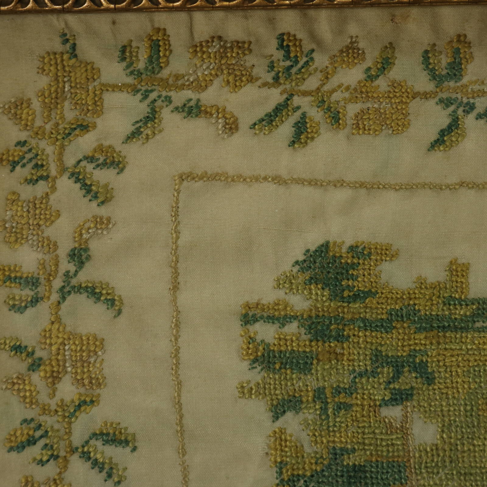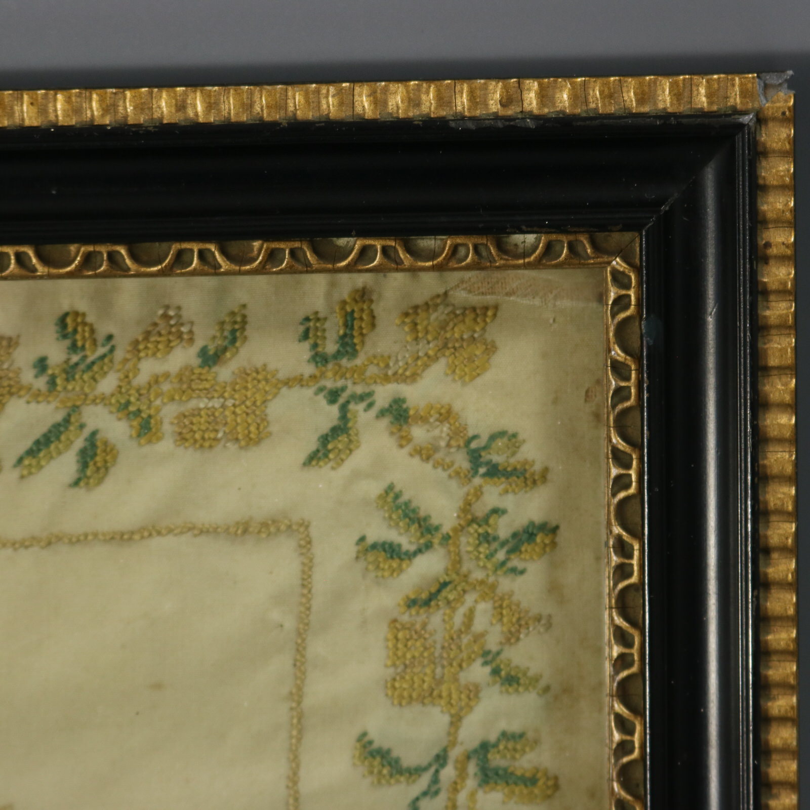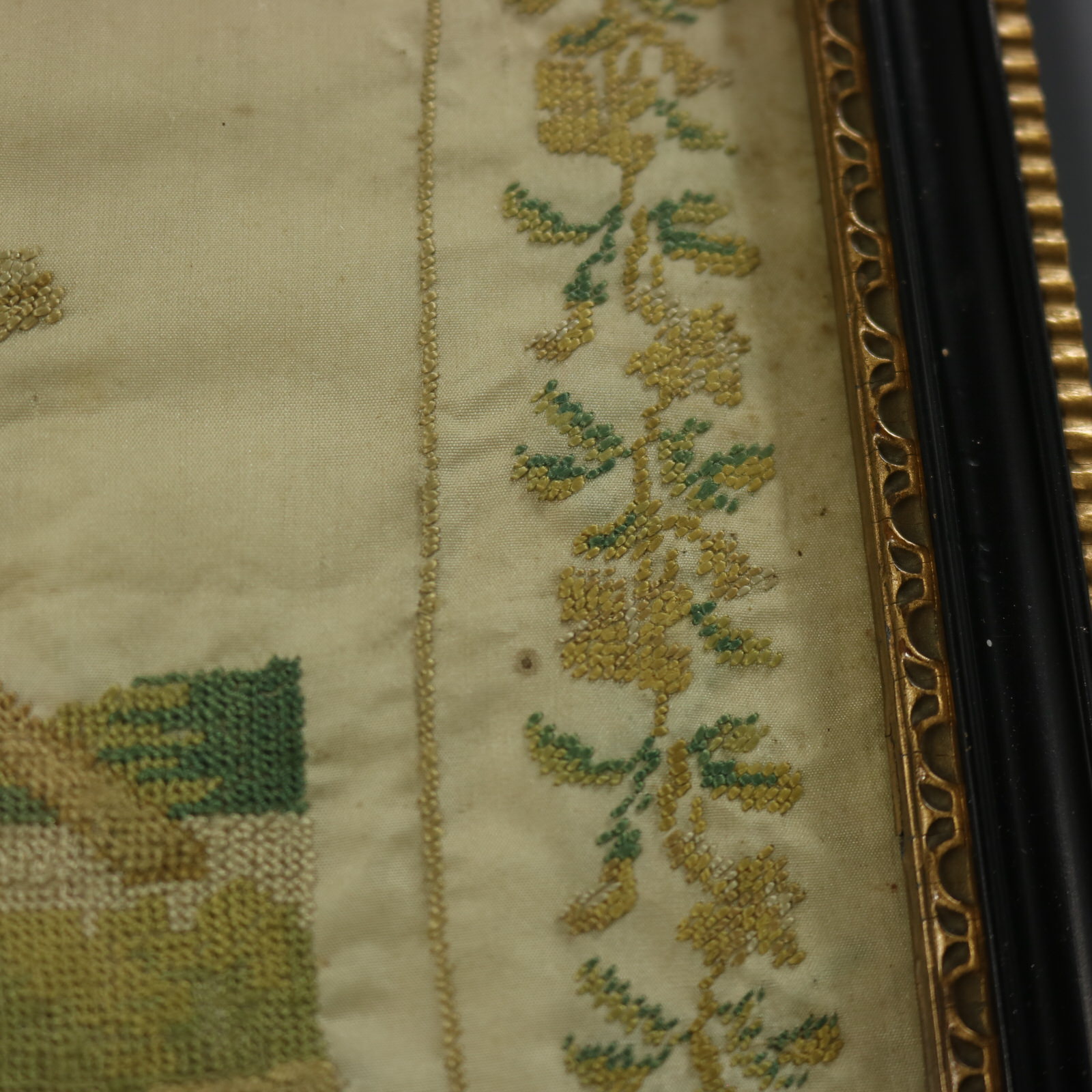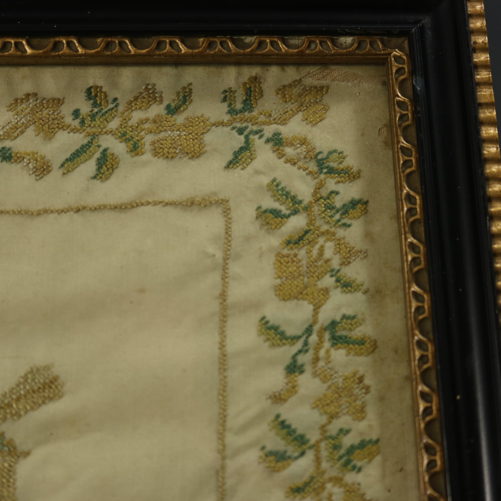 Mounting: The sampler is fixed to card. Frame backed with paper and sealed with tape.