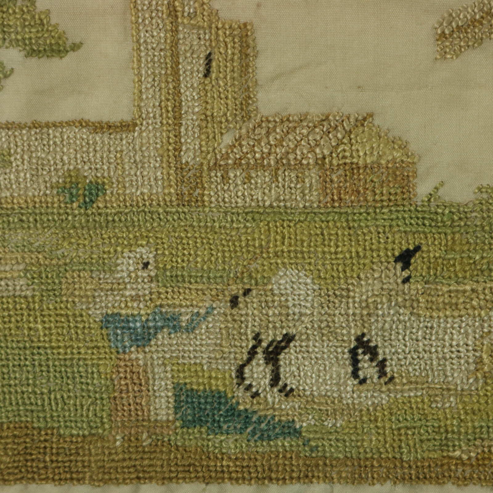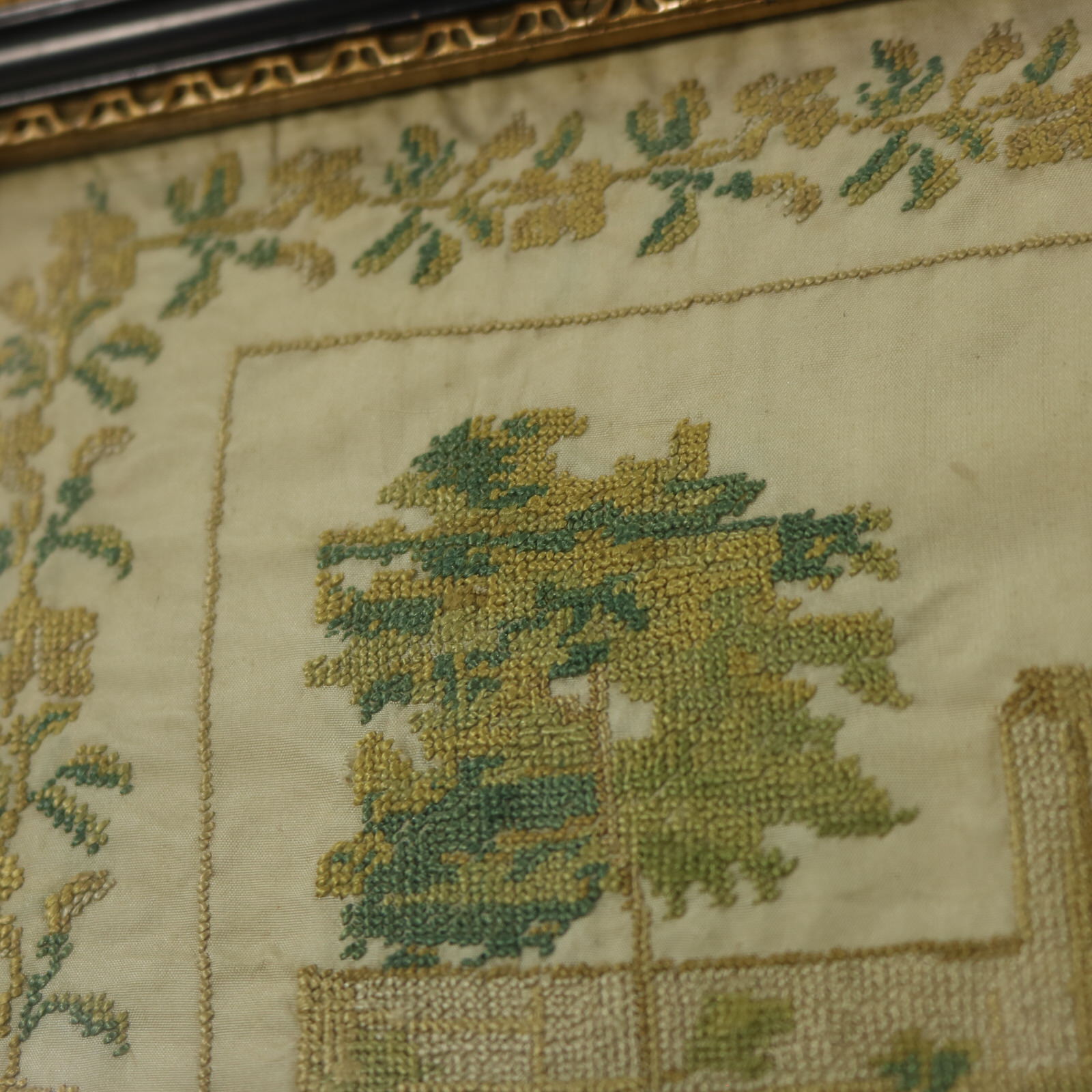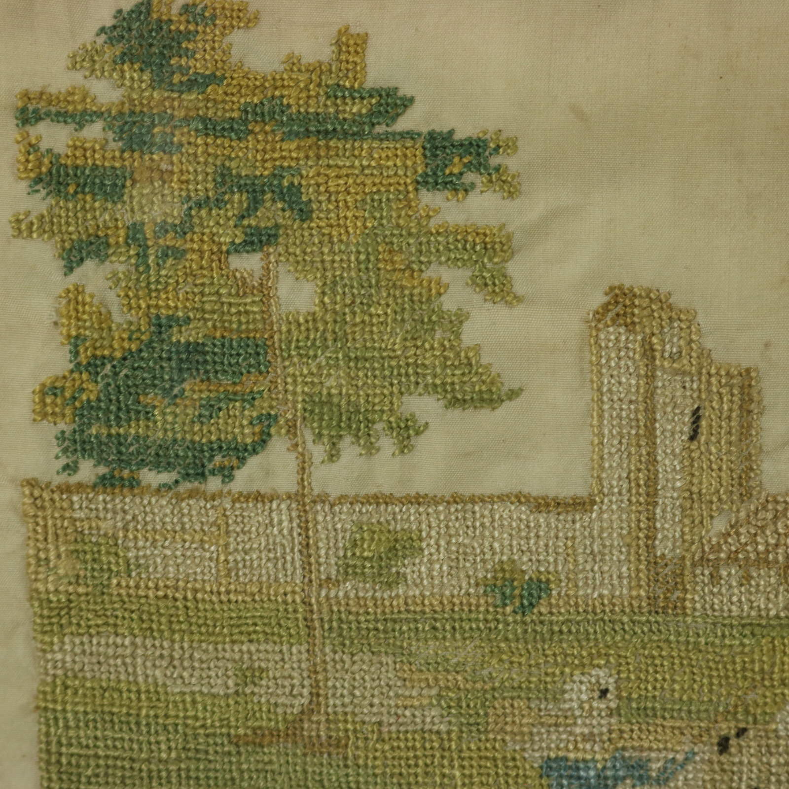 The sampler is worked in silk threads on a silk ground, in cross stitch throughout.