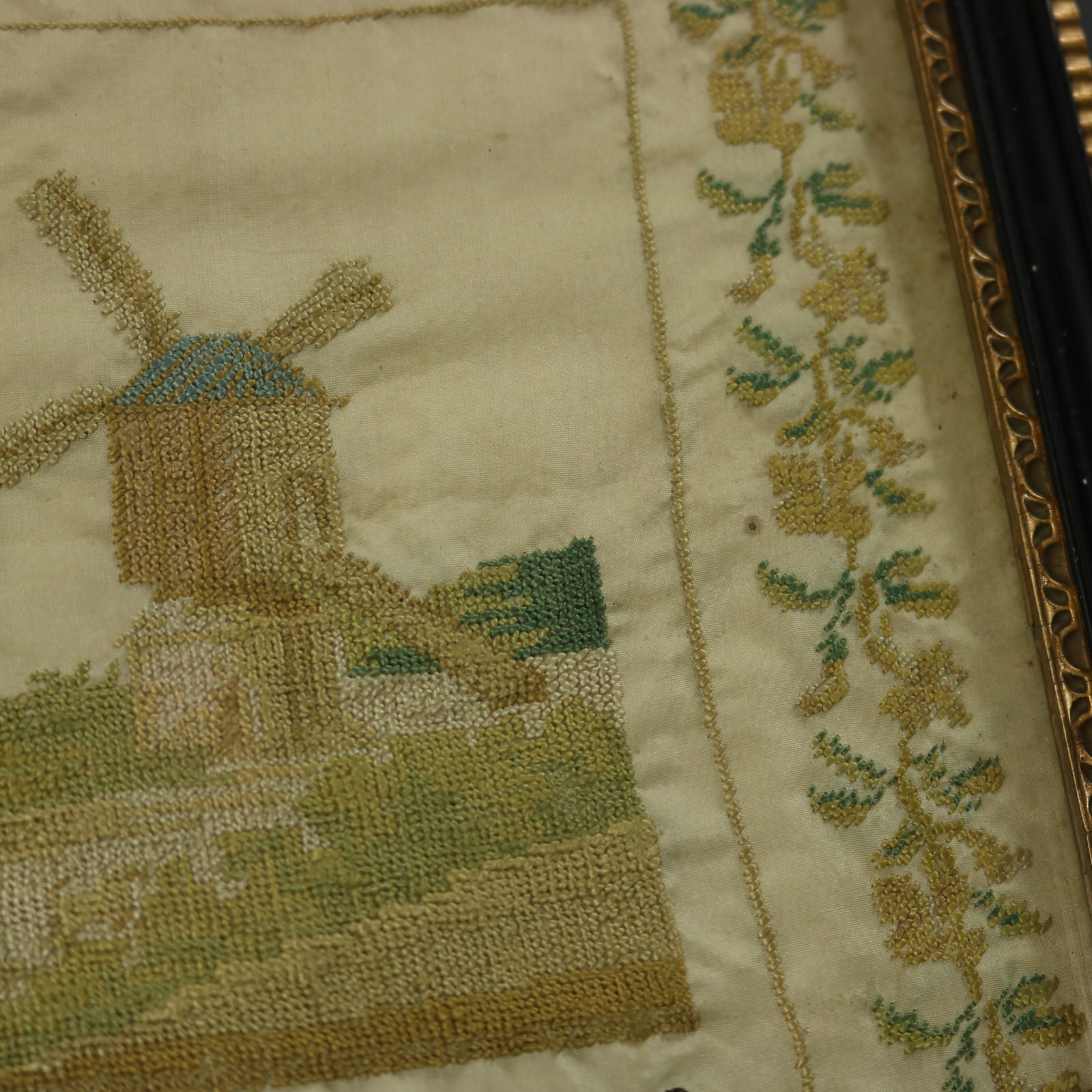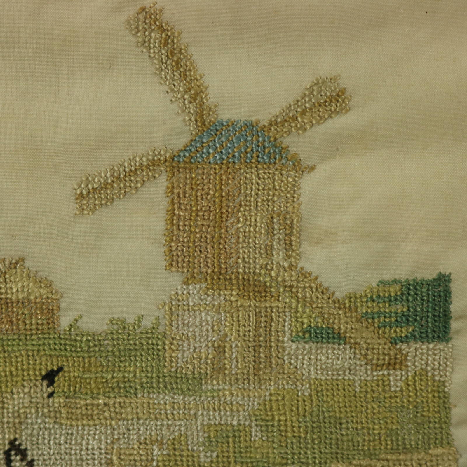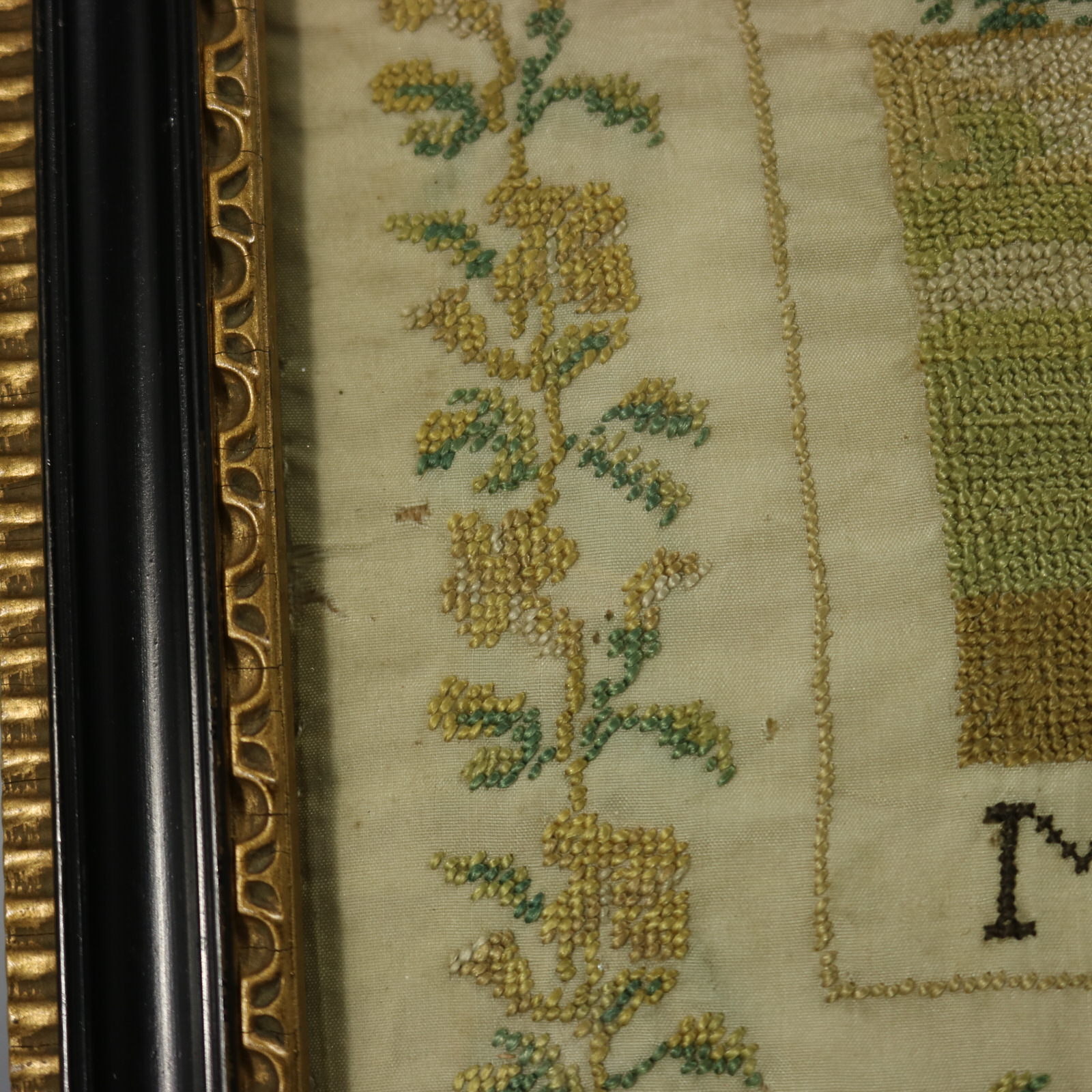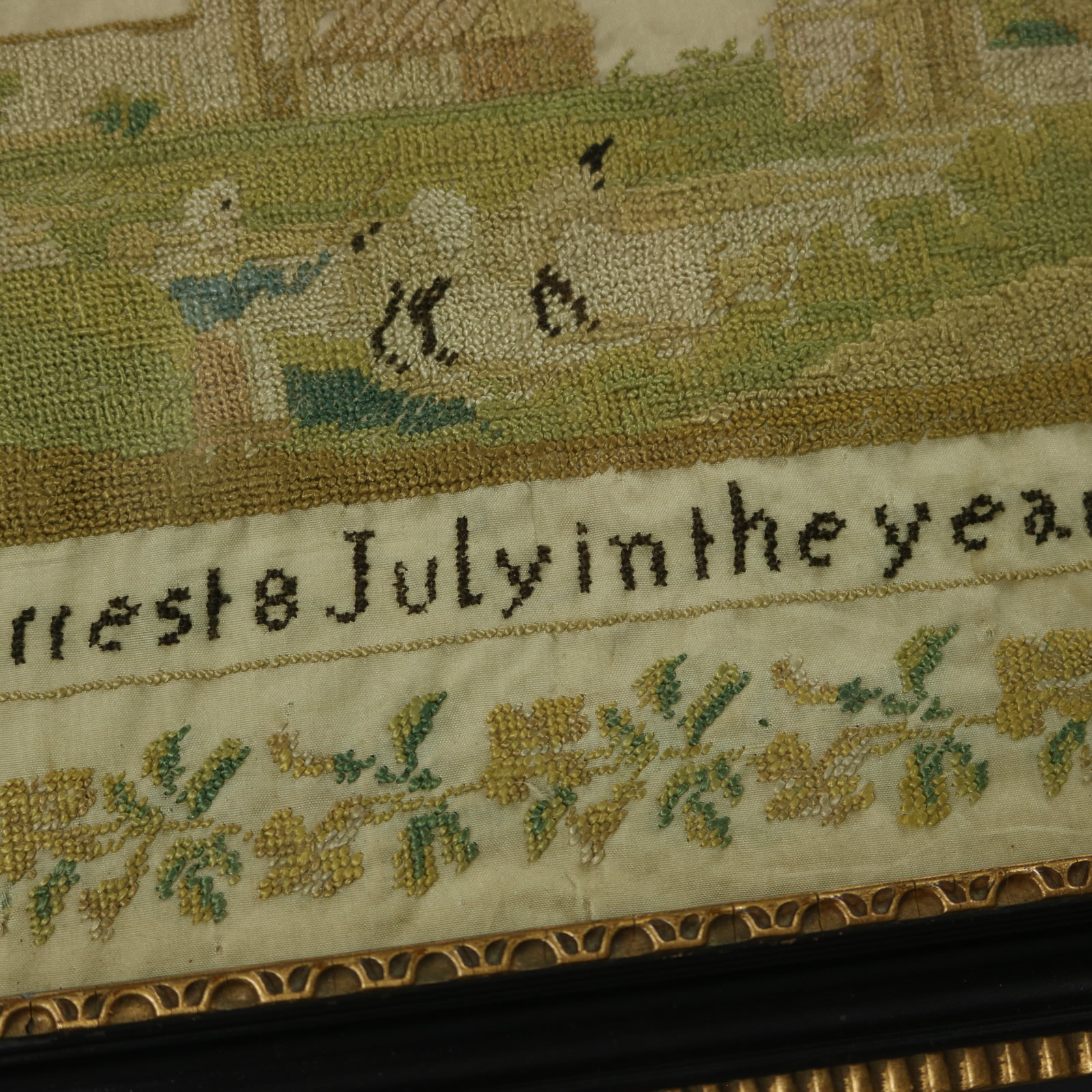 The sampler is worked in silk threads on a silk ground, in cross stitch throughout.
