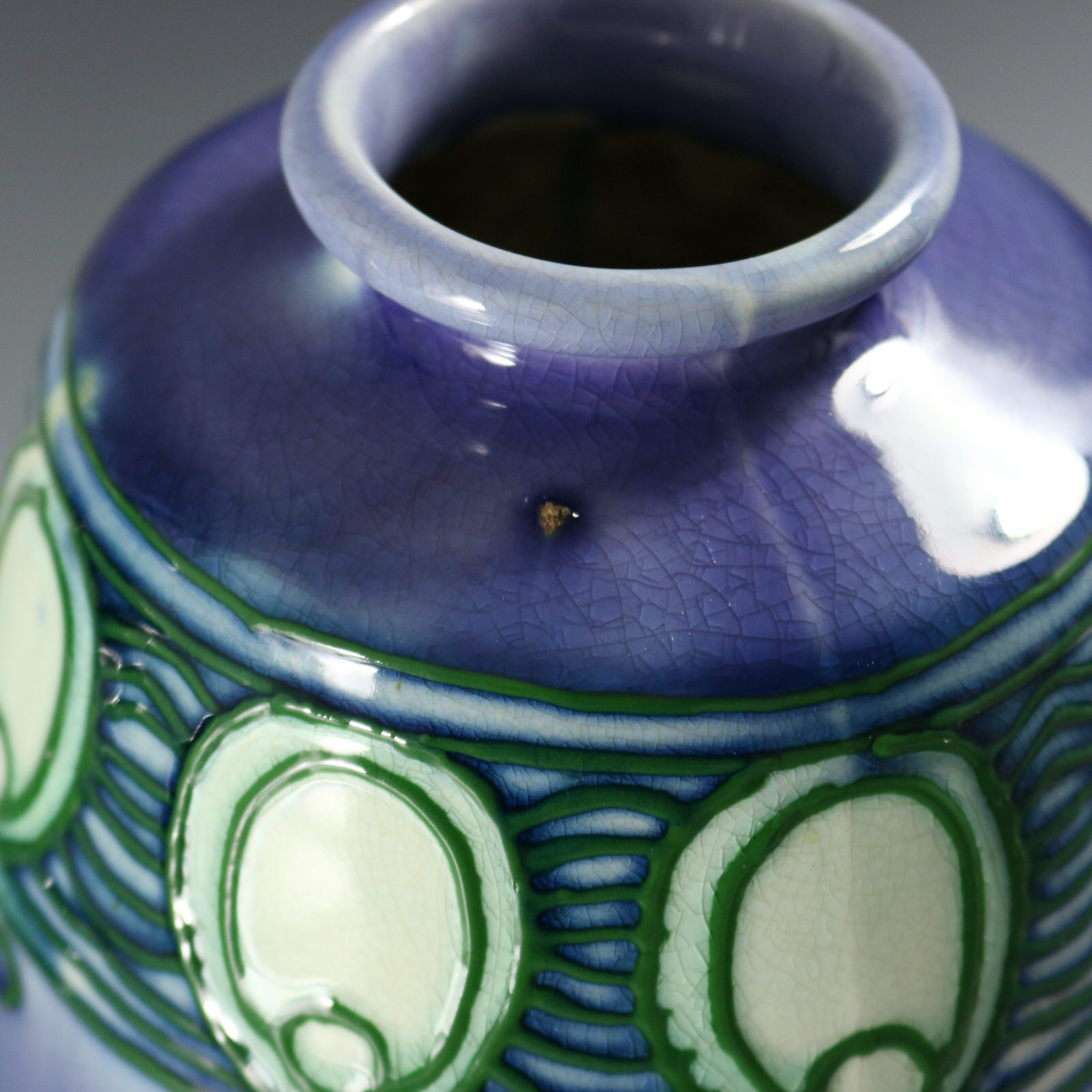 CONDITION: Very good. No restorations. A couple of specks of kiln detritus in the glaze.