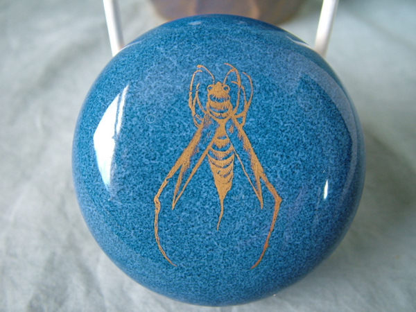 Kiln effect: a few firing pits to the side of the vase with associated patch where colour is slightly darker.
