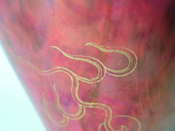 Circa 1920. 8.75ins high, 5.5ins wide. Wedgwood dragon lustre vase.