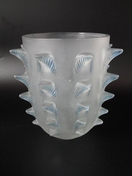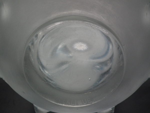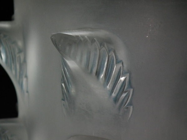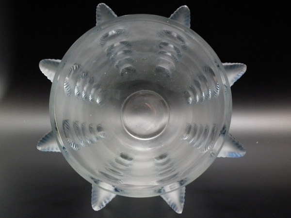Introduced in 1933. Height: 18.5cm (7.28ins). Width: 18.8cm (7.4ins). Depth: 18.8cm (7.4ins). René Lalique Frosted with Blue Staining Glass 'Corinthe' Vase. Book reference: Marcilhac 1087.