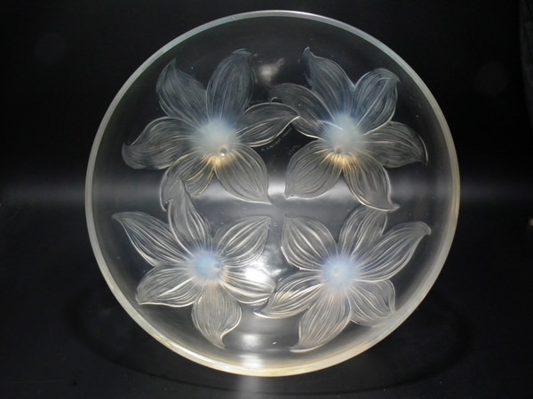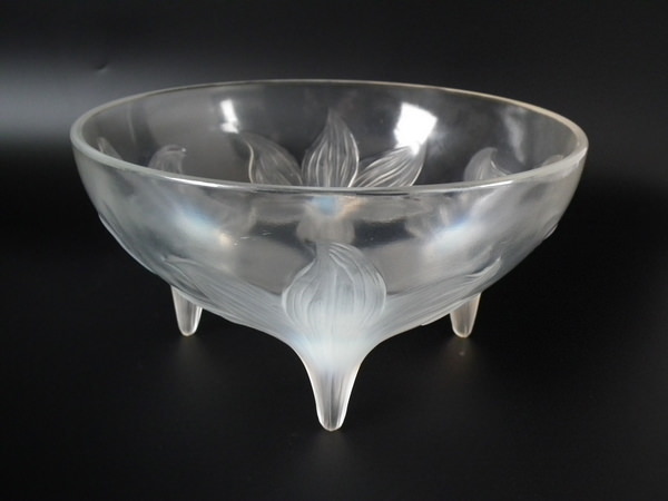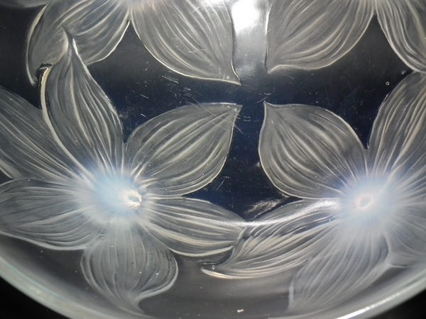 Introduced in 1924. Height: 12.5cm (4.92ins). Width: 23.9cm (9.41ins). Depth: 23.9cm (9.41ins).. René Lalique Opalescent Glass 'Lys' Bowl. Book reference: Marcilhac 382.