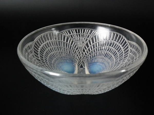 Introduced in 1924. Height: 5.5cm (2.17ins). Width: 13.4cm (5.28ins). Depth: 13.4cm (5.28ins). René Lalique Opalescent Glass 'Coquilles No5' Bowl. Book reference: Marcilhac 3204.