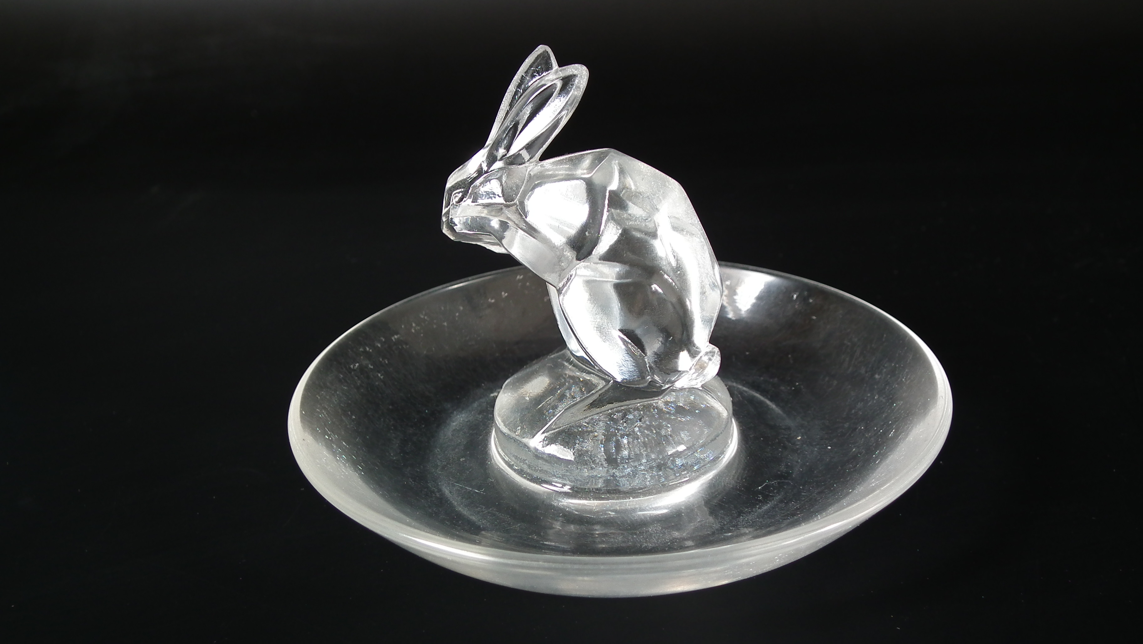 René Lalique Clear Glass 'Lapin (Rabbit)' Round ashtray. Book reference: Marcilhac 285.