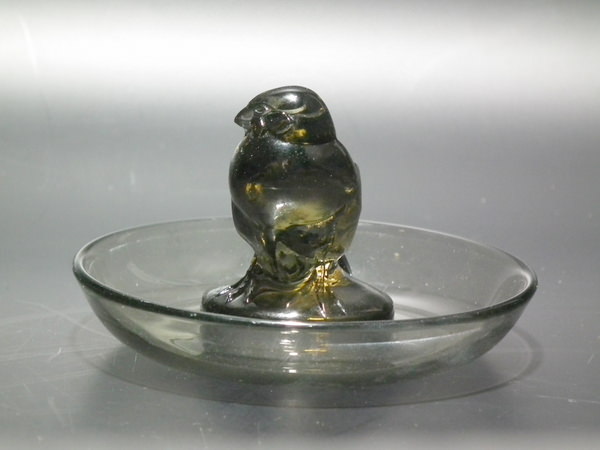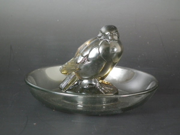 Rene Lalique Topaz Glass 'Moineau' Round ashtray