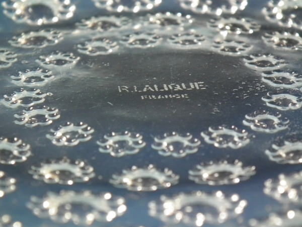 Introduced in 1935. Height: 2.3cm (0.91ins). Width: 27.4cm (10.79ins). Depth: 27.4cm (10.79ins). René Lalique Opalescent Glass 'Asters no2' Plate. Book reference: Marcilhac 10-3039. Condition CONDITION: Good. Light scratches. Go