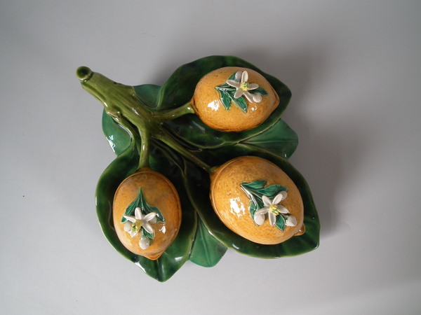 Minton Majolica lemons on leaf preserve server