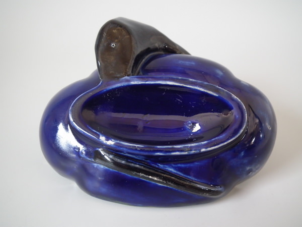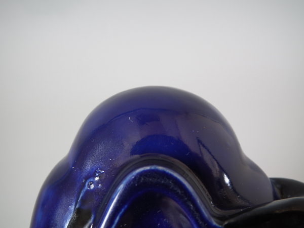 KILN EFFECTS: flecks of stray blue glaze to the rim and dish;