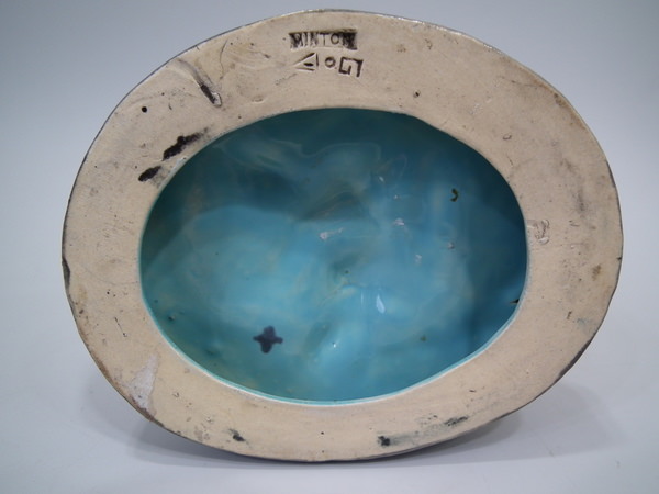 The piece bears maker's marks for the Minton pottery. Marks include a factory specific date cipher for the year 1868.