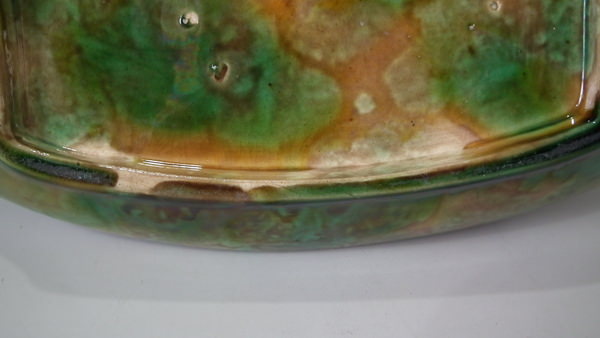 KILN EFFECTS: a few specks of kiln detritus caught in the glaze.