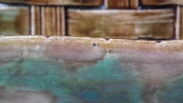 RESTORATION. Top rim corner reglued and join retouched.