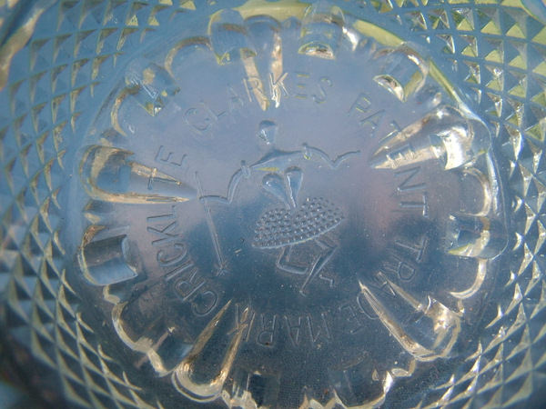 Maker's mark 'S. CLARKE PATENT TRADEMARK CRICKLITE' to base of cup.