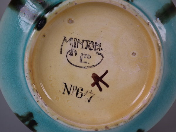 Stilt marks inside foot rim and maker's marks printed 'MINTONS LTD No. 67' and indecipherable impressed marks.
