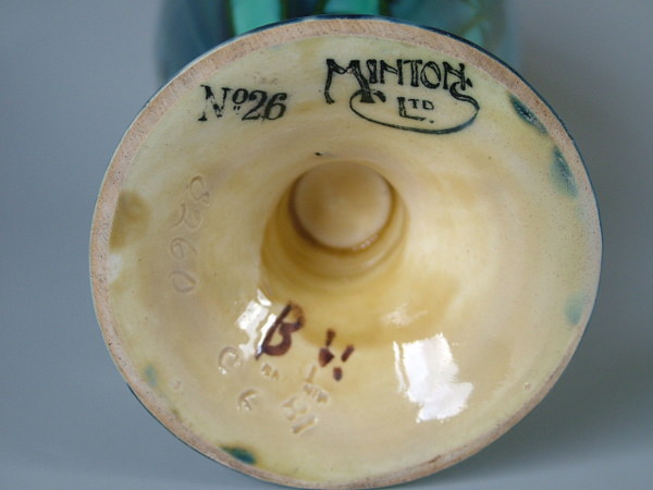 Creamy ochre interiors with impressed marks to underneath of foot, along with printed maker's marks 'MINTONS LTD' and 'No26'