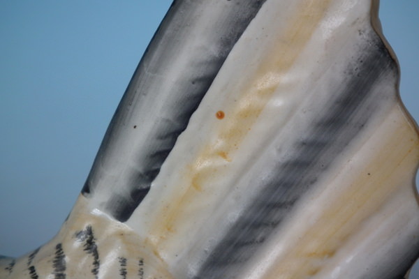 KILN EFFECTS: flecks of stray coloured glaze to the feathers;