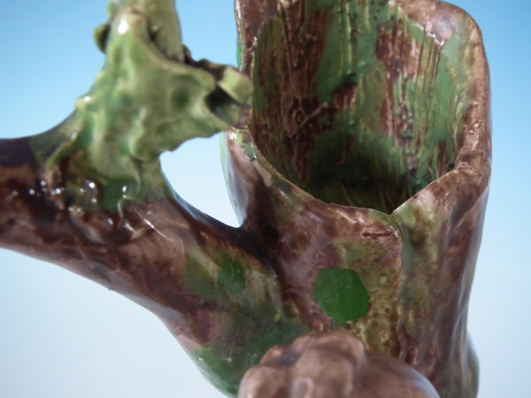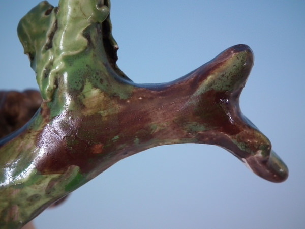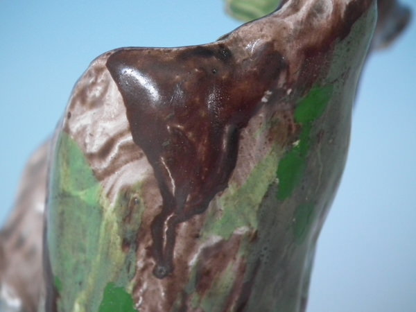KILN EFFECTS: shrinkage crack along the mold join to the dog's back.