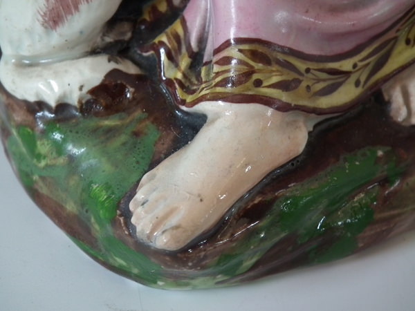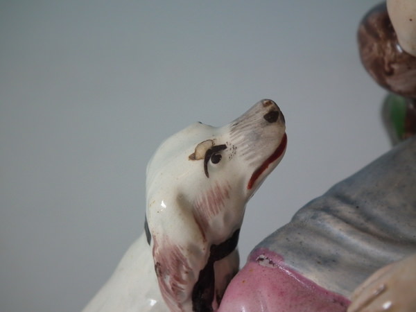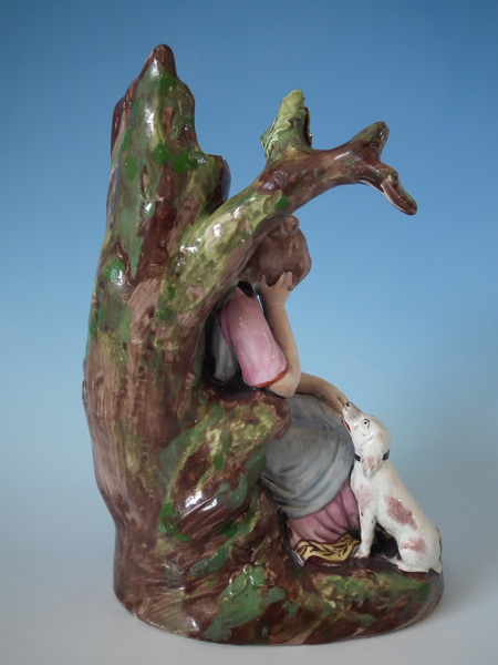 This piece represents Maria, sometimes called Poor Maria, taken from a description in 'A Sentimental Journey Through France', by Lawrence Sterne. Book reference,'English Earthenware Figures 1740-1840' by Pat Halfpenny, page 149, figure 40.