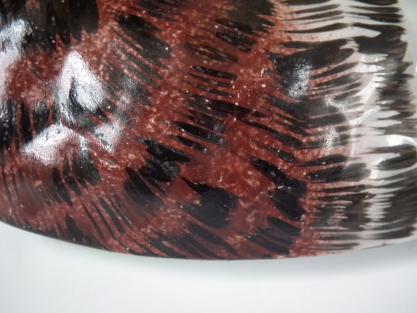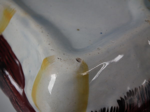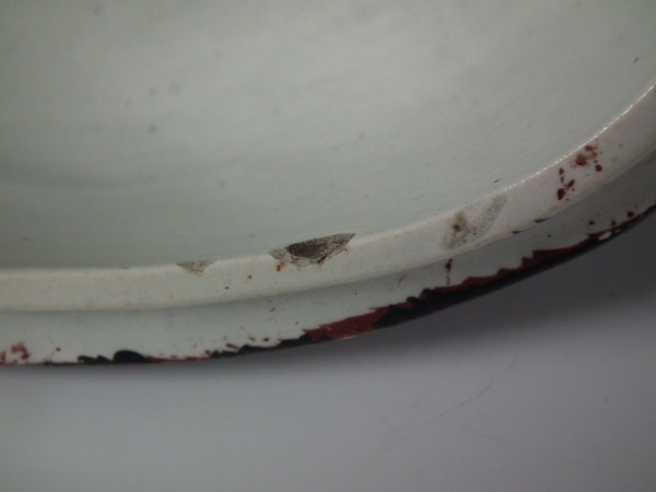 RESTORATION. Retouching to paint loss to black and brown enamel.