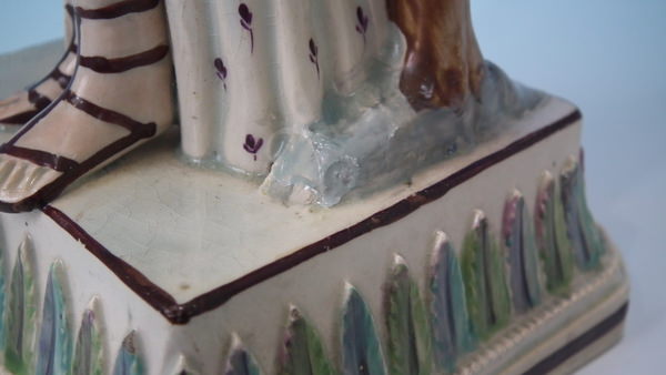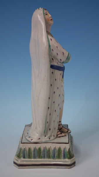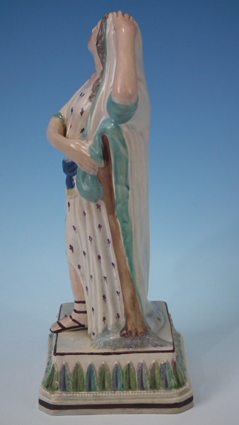 Staffordshire pearlware figure which features Hope, stood on a square hollow base.