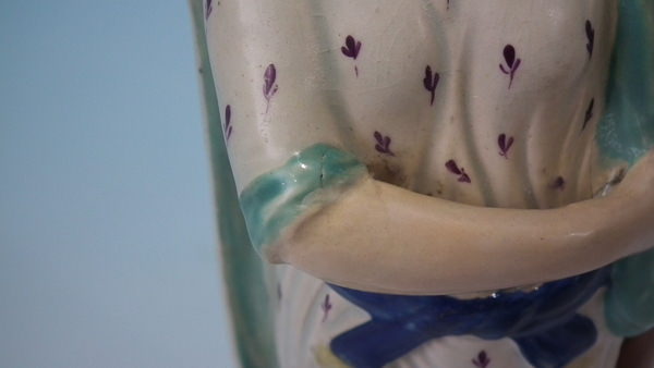 RESTORATION. Stabilised and retouched crack around her right hand and elbow and left shoulder.