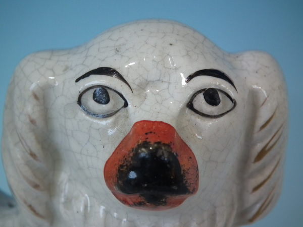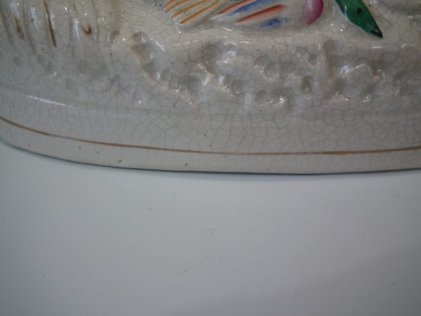 Staffordshire spaniel with game bird spill vase