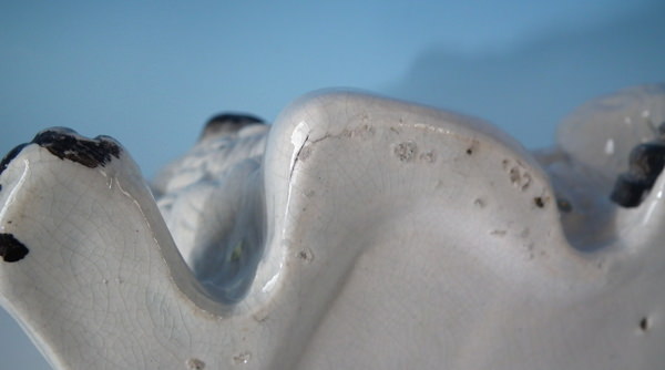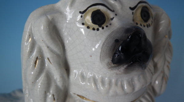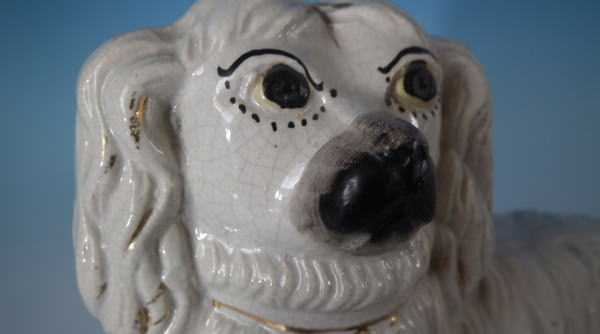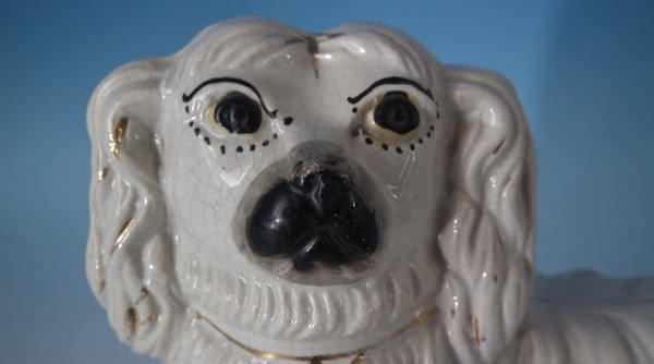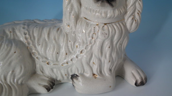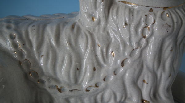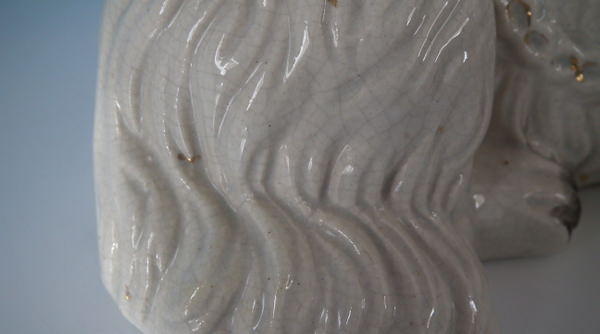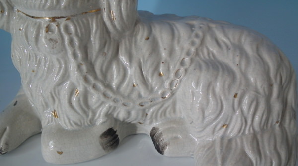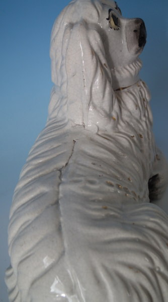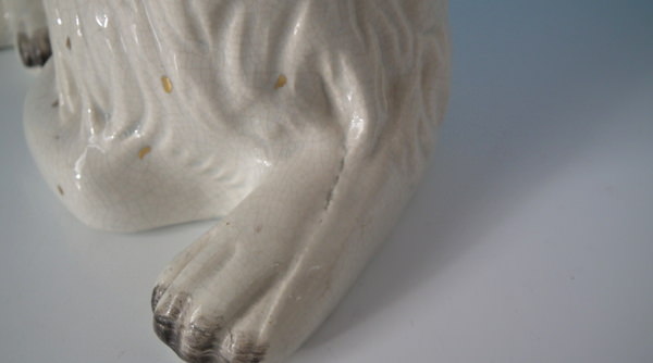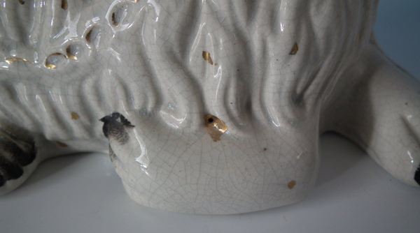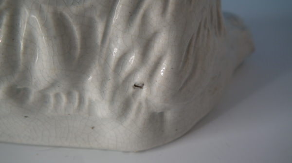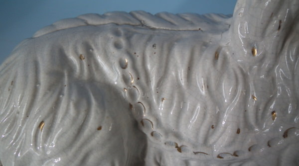 KILN EFFECTS: shrinkage marks along the mold join to spaniel's back and left front leg;