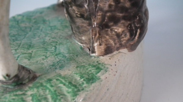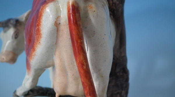 KILN EFFECTS: firing cracks to the cow's hind legs and udder;