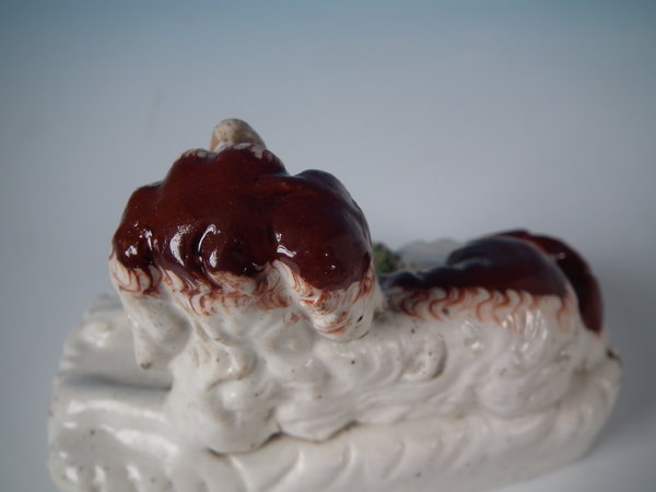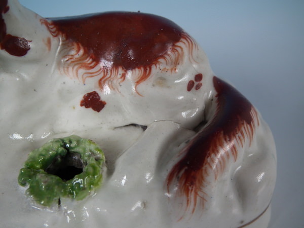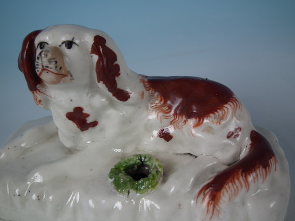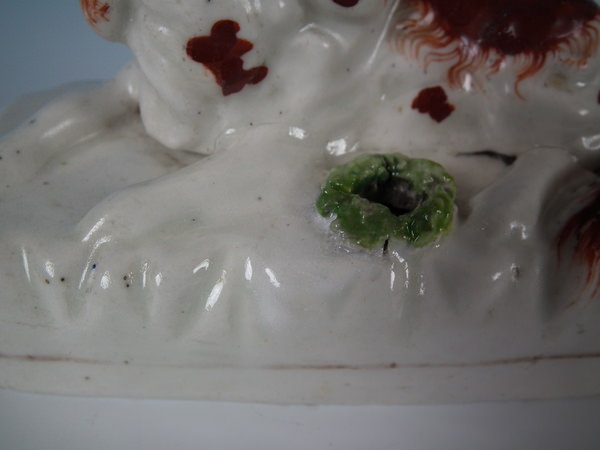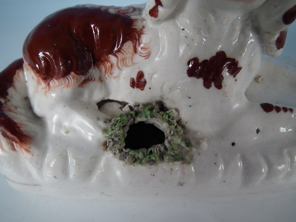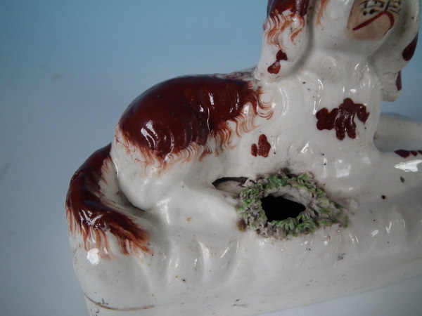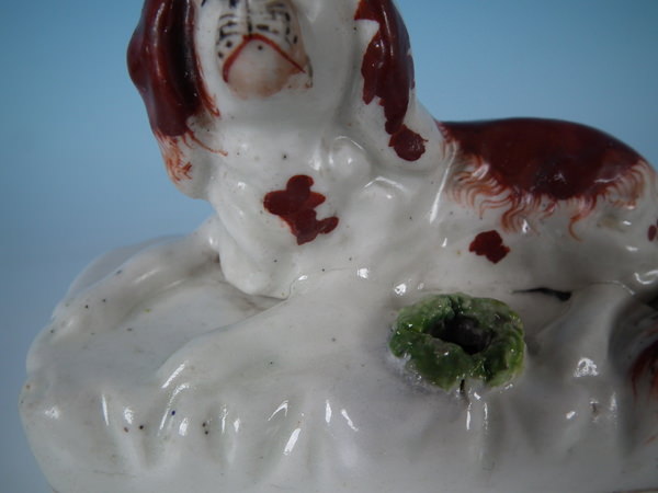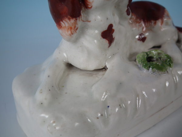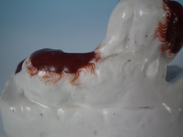 over glazed shrinkage lines to the tops of the legs and to back of spaniel.
