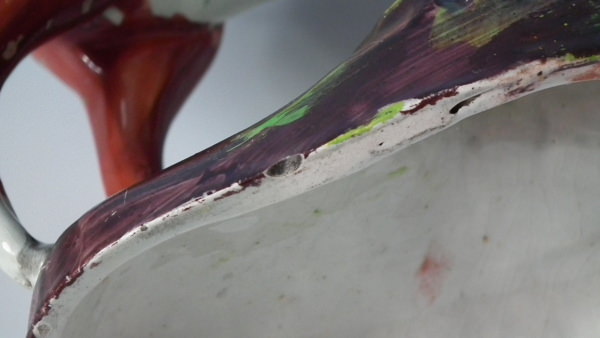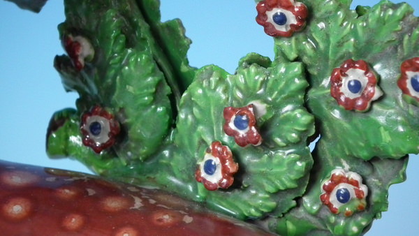 Good. Chips to leaves and flowers of bocage and small chip to lower base edge at reverse.