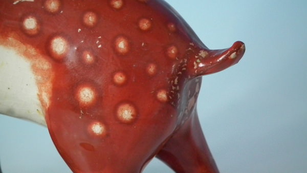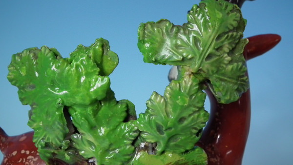 RESTORATION: reglued and retouched sections to antlers and trunk of bocage tree.