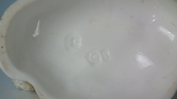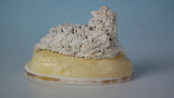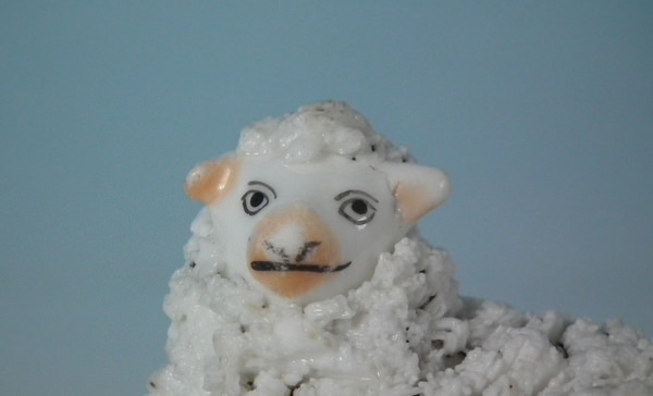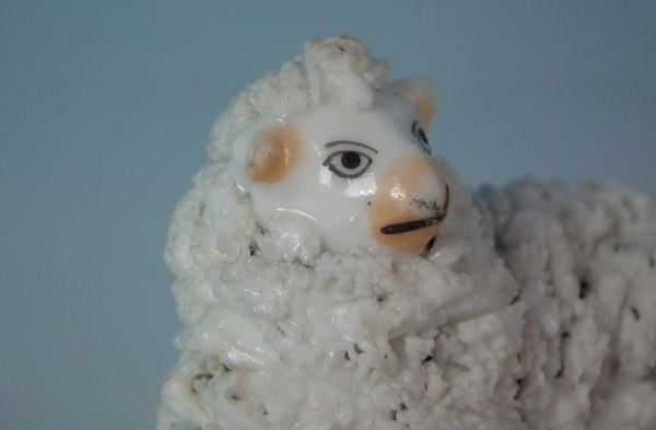 pre-Victorian, circa 1830. 2.2ins high, 2.8ins wide, 2ins depth. Alcock Staffordshire porcellaneous figure with a pastoral theme which features a sheep, recumbent on a rock shaped base.