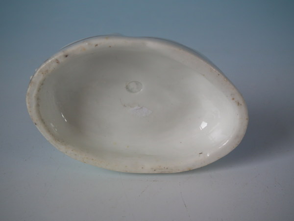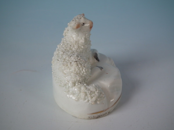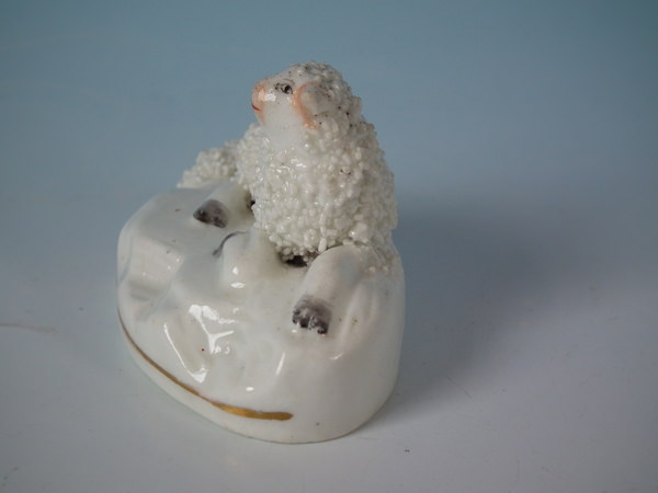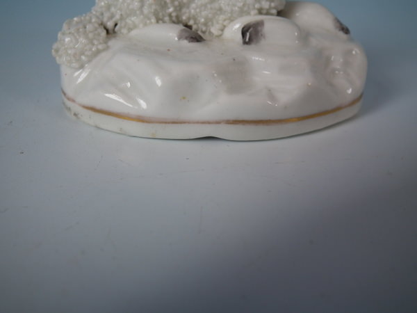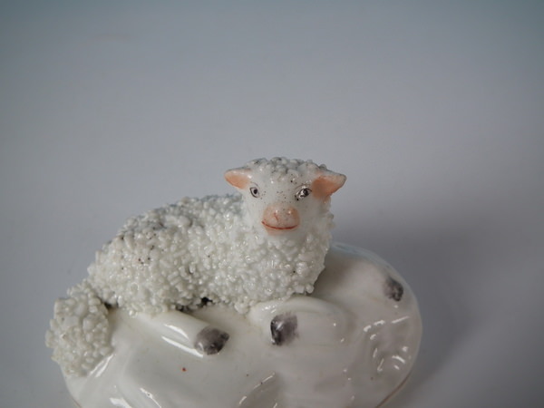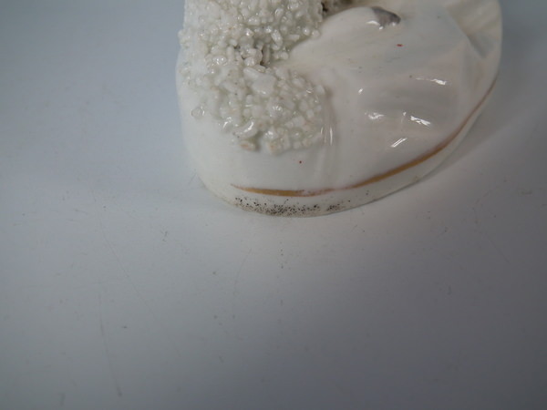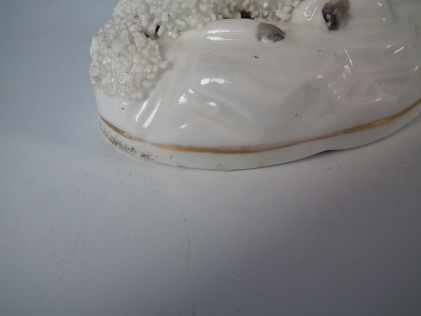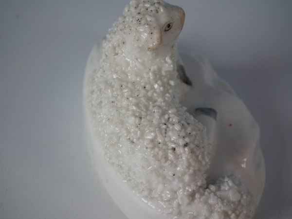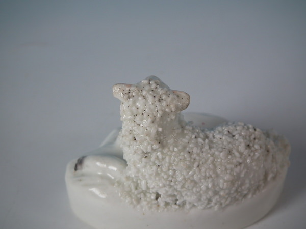 KILN EFFECTS: kiln soot caught in the glaze to the sheep's head, body and to base;
