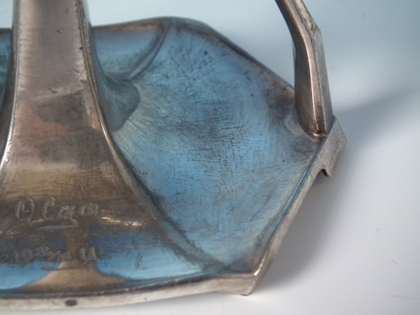 CONDITION: Candlestick 1: Good. Slight distortion to the base rim and sconce. Some wear.
