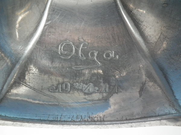 Each ingraved with 'Olga 19 24/12 11' to the upper base.