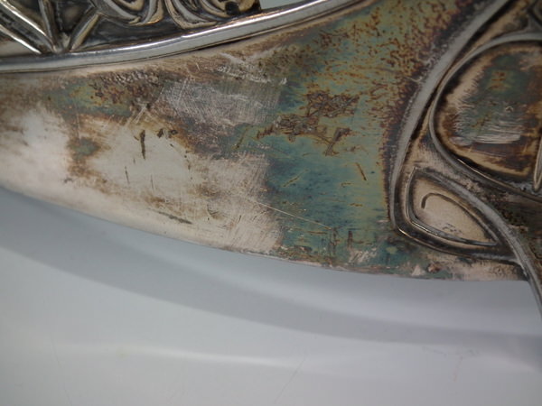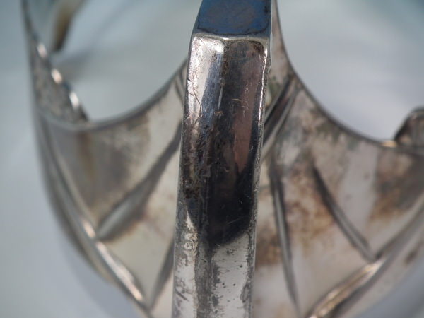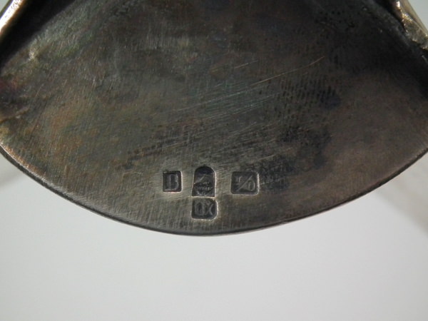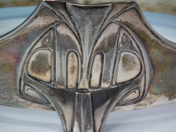 Impressed maker's mark 'WMF' ostrich mark 'B', 'OX' and 'I/O' all to the back of one foot.