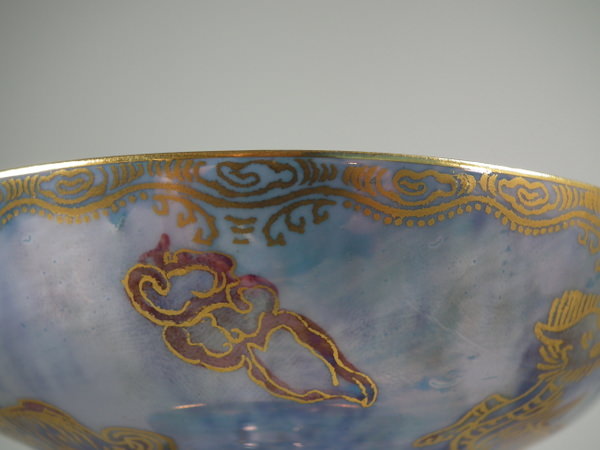 Circa 1920. 4.1ins diameter by 3ins high. Wedgwood lustre Dragon melba cup, shape number 2793.