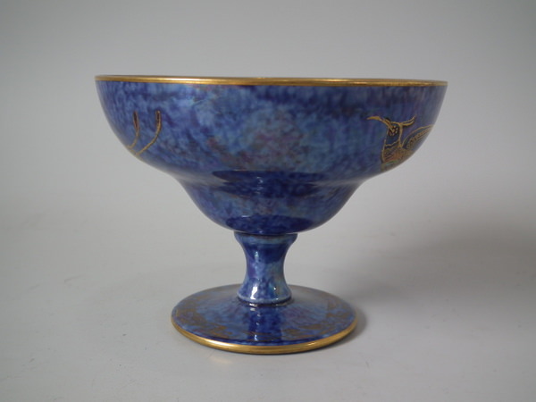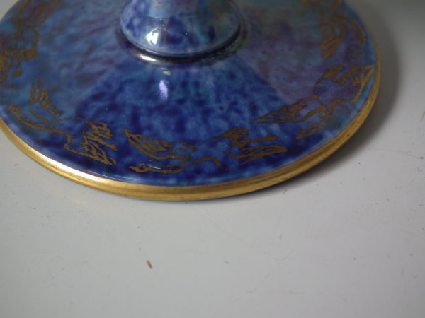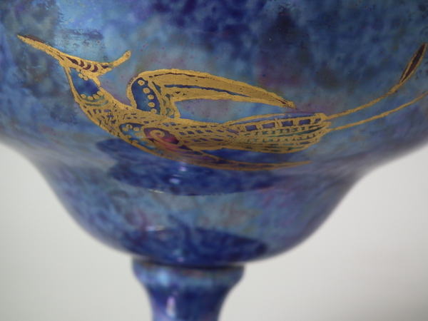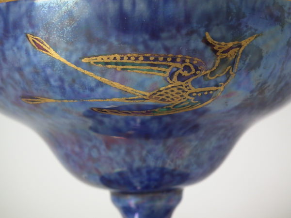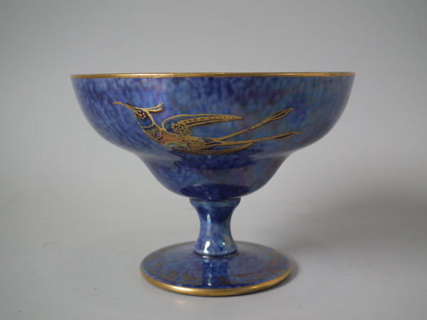 Circa 1920. 4.25ins diameter, 3.25ins high. Wedgwood lustre flying hummingbirds melba cup, shape number 2793.