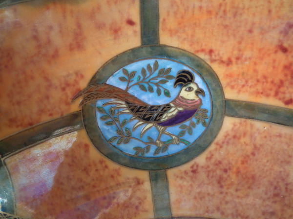 Kiln effect: Slight colour 'miss' by one pheasant tail on the inside of the bowl.