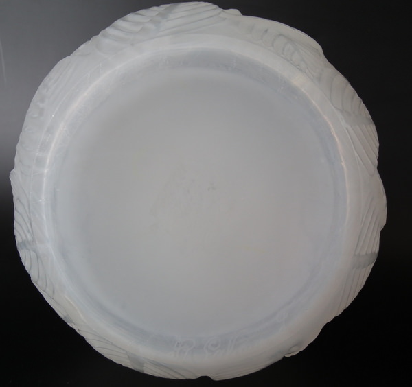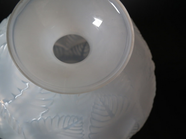 Introduced in 1926. Height: 16.6cm (6.54ins). Width: 14cm (5.51ins). Depth: 14cm (5.51ins). René Lalique Cased opalescent Glass 'Ormeaux' Vase. Book reference: Marcilhac 984.