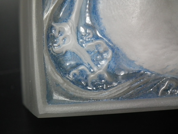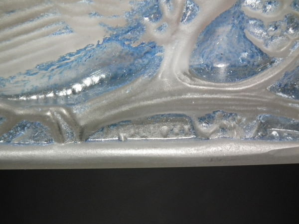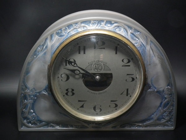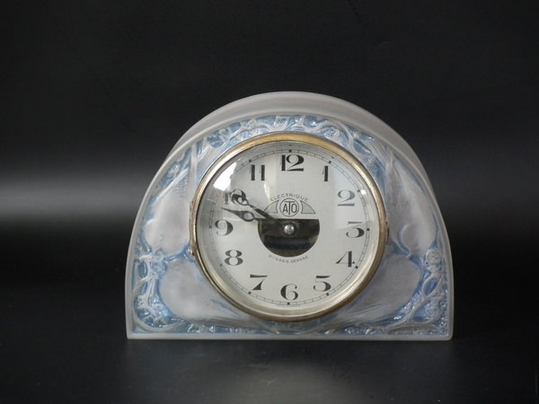 René Lalique Frosted with blue staining Glass 'Moineaux' Clock.
