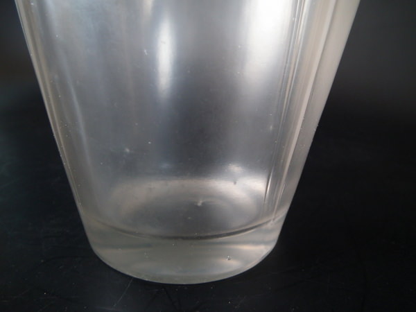 Good. Tiny nibbles. Some visible manufacturing blemishes within the glass.
