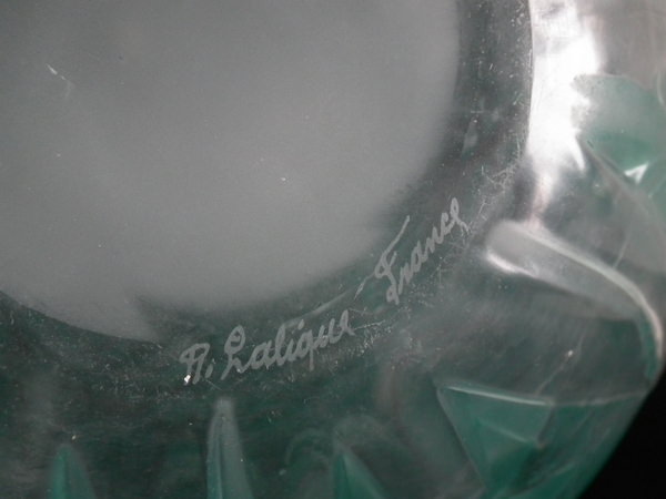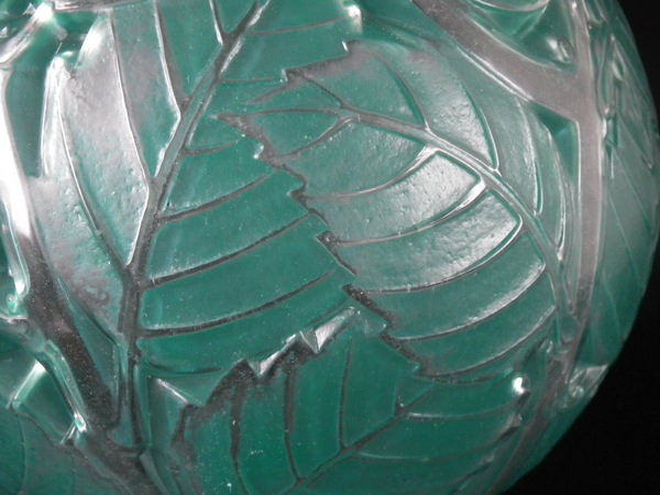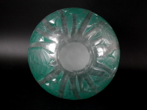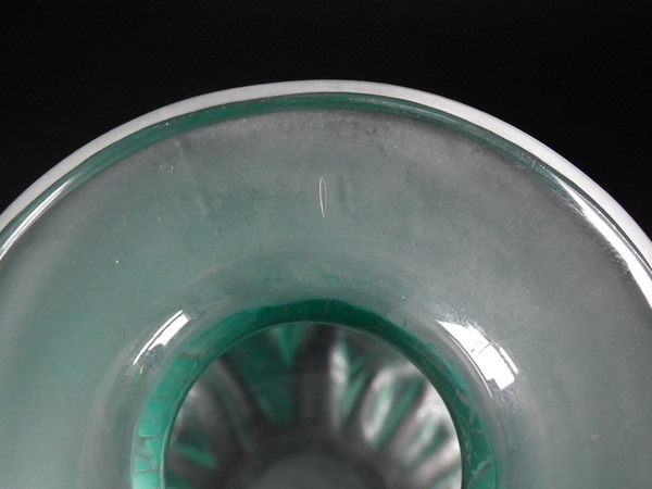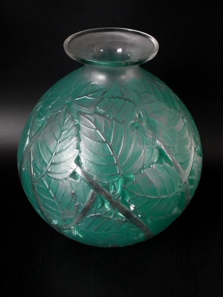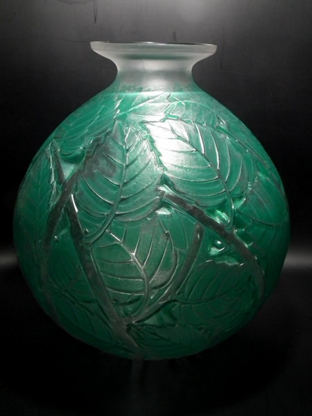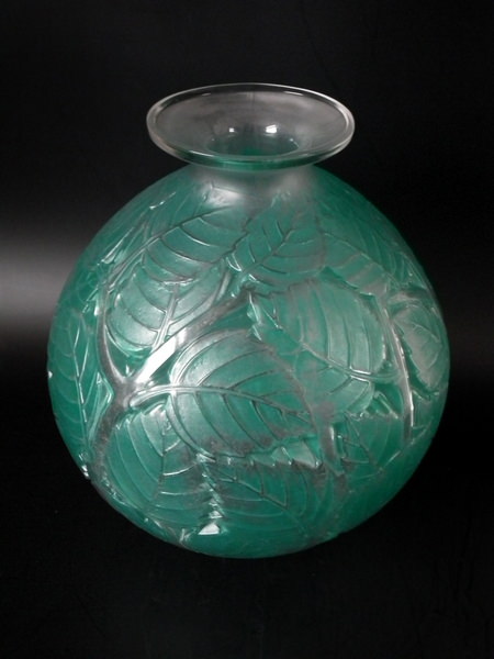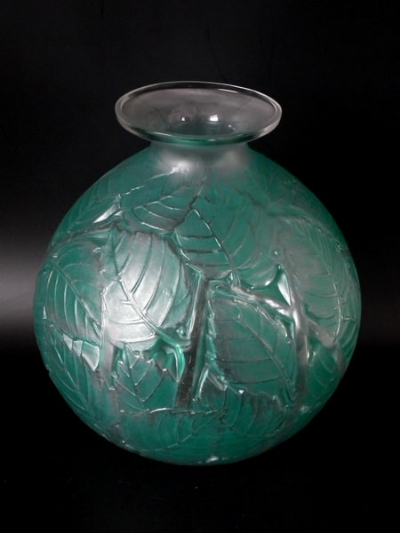 Introduced in 1929. Height: 28.6cm (11.26ins). Width: 23cm (9.06ins). Depth: 23cm (9.06ins).. Rene Lalique Clear with green staining Glass 'Milan' Vase.