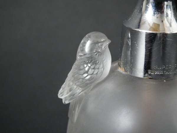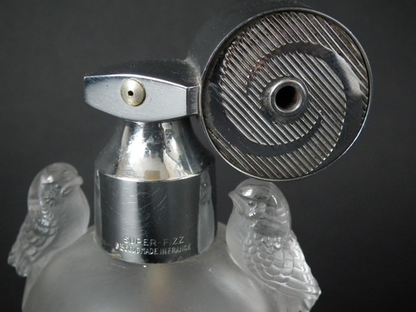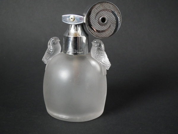 René Lalique Frosted Glass 'Marcel franck Perruches' pefume bottle with atomiser