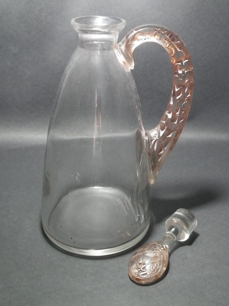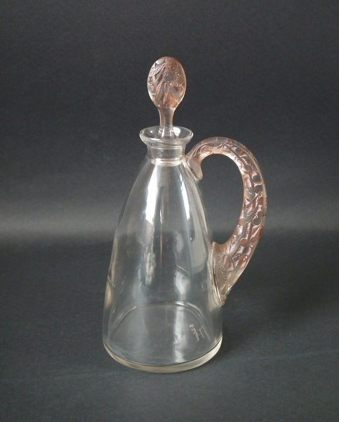 René Lalique Clear with Sepia staining to handle and stopper Glass 'Prunelles' Carafe.
