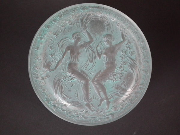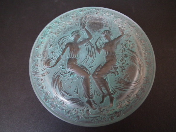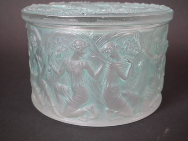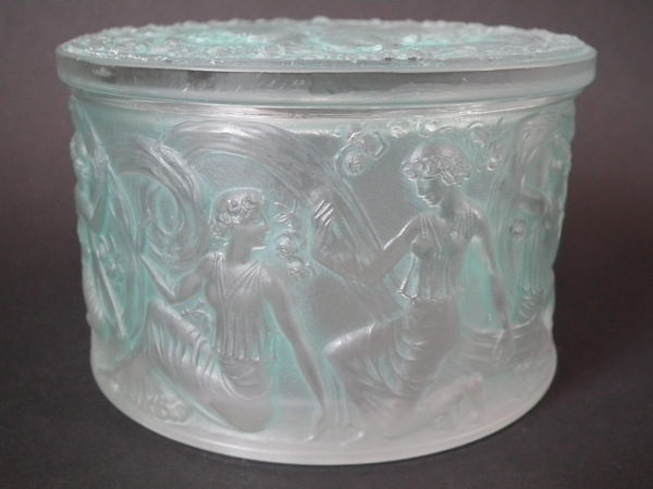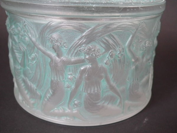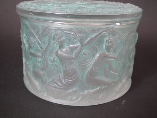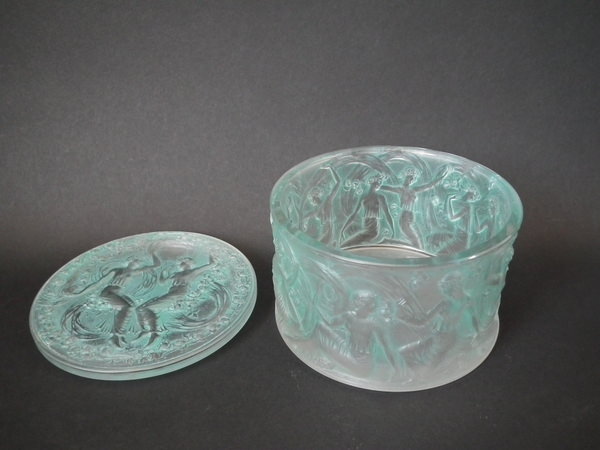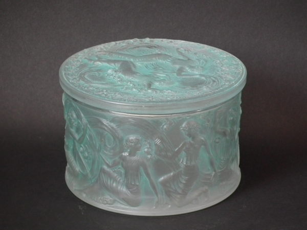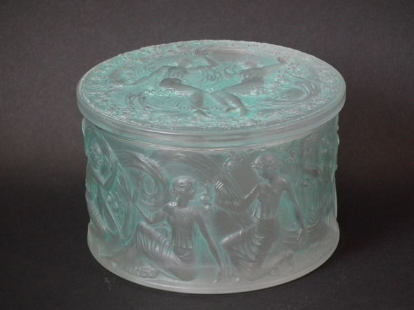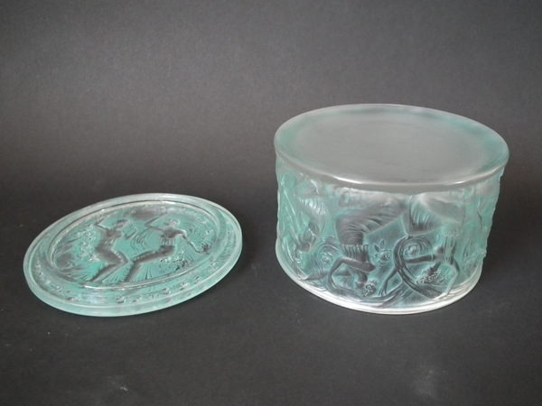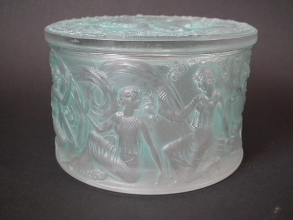René Lalique Clear & frosted with green staining Glass 'Figurines et Voiles' box